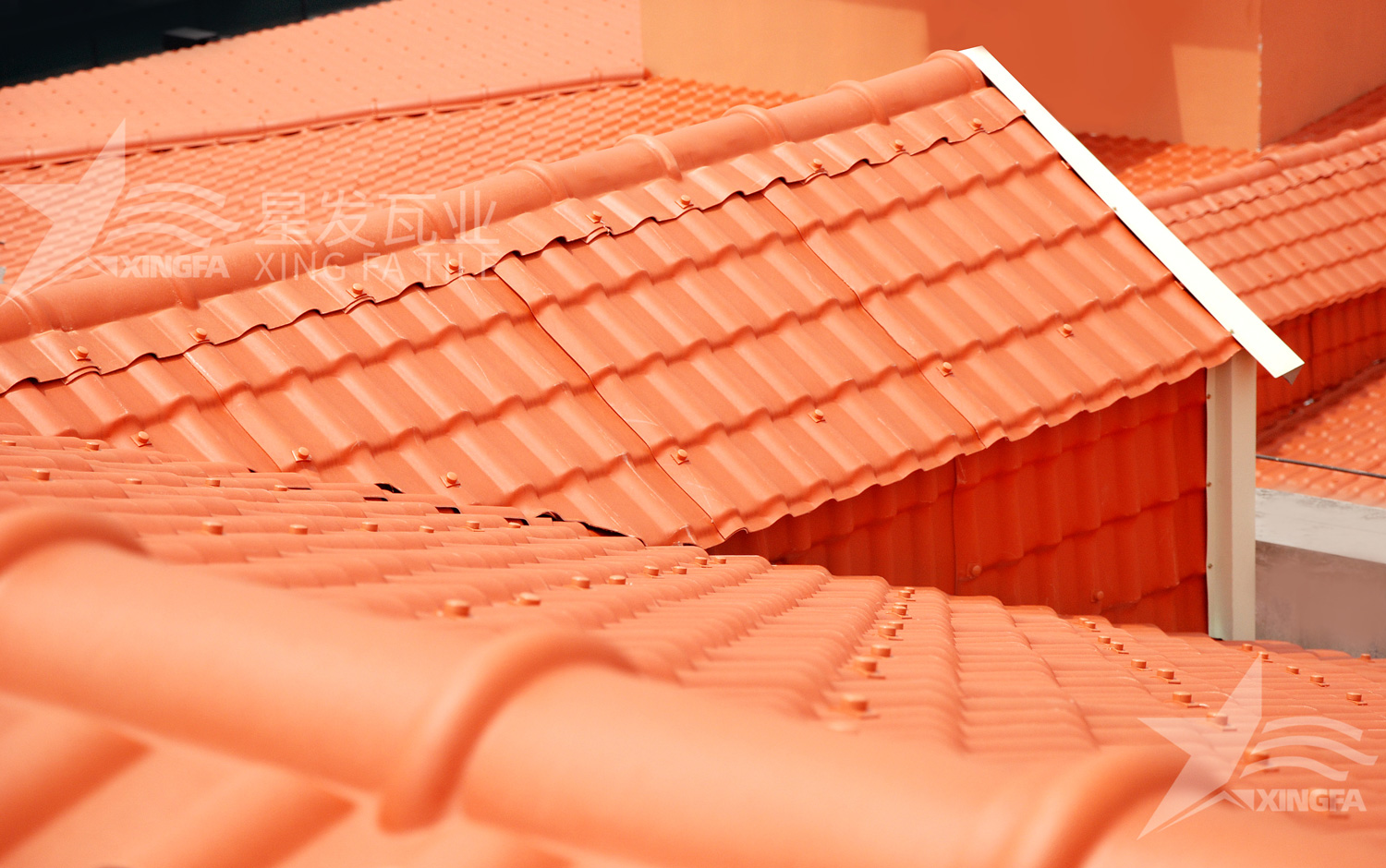 合成樹脂瓦的常規(guī)寬度有:880mm、1050mm、1040mm、920mm、840mm、1080mm等等,搭接需要兩片合成樹脂瓦的第一個波連接起來。所以說,880mm的合成樹脂瓦搭接后的有效寬度變?yōu)?00mm,1050mm的合成樹脂瓦搭接后的有效寬度變?yōu)?60mm。