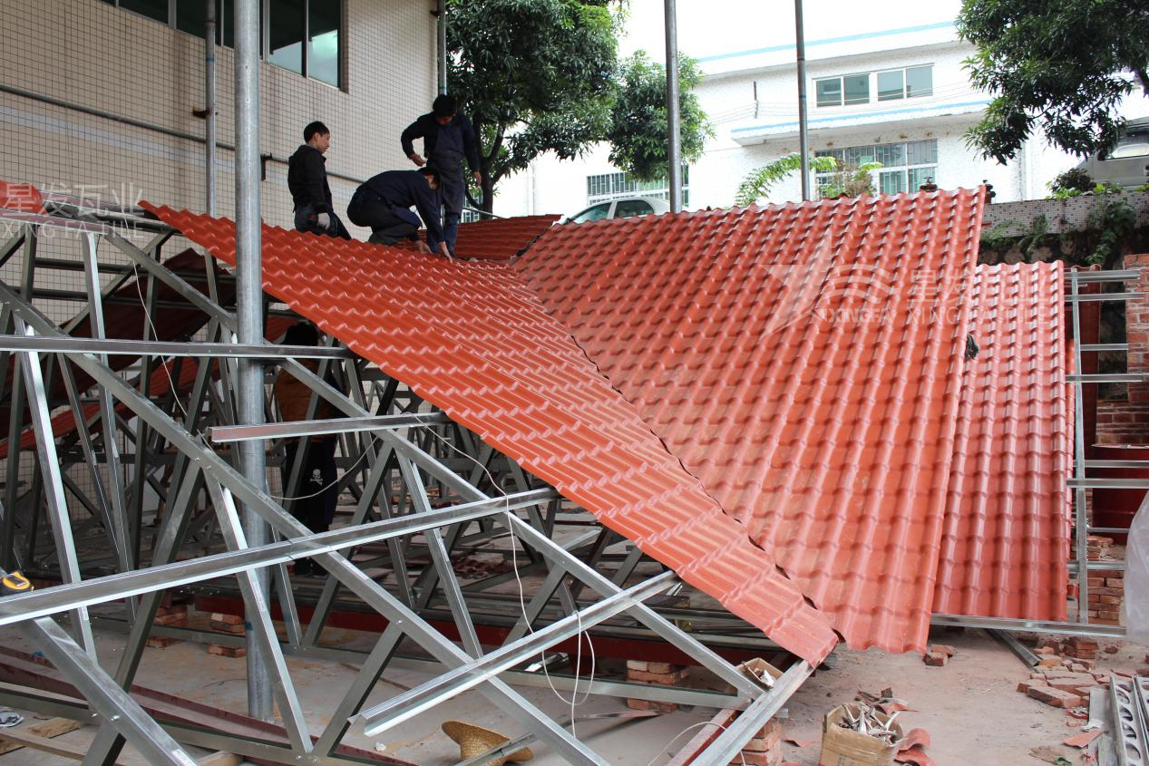 合成樹脂瓦施工安裝用什么材料搭建架子,鋼結(jié)構(gòu)搭建樹脂瓦